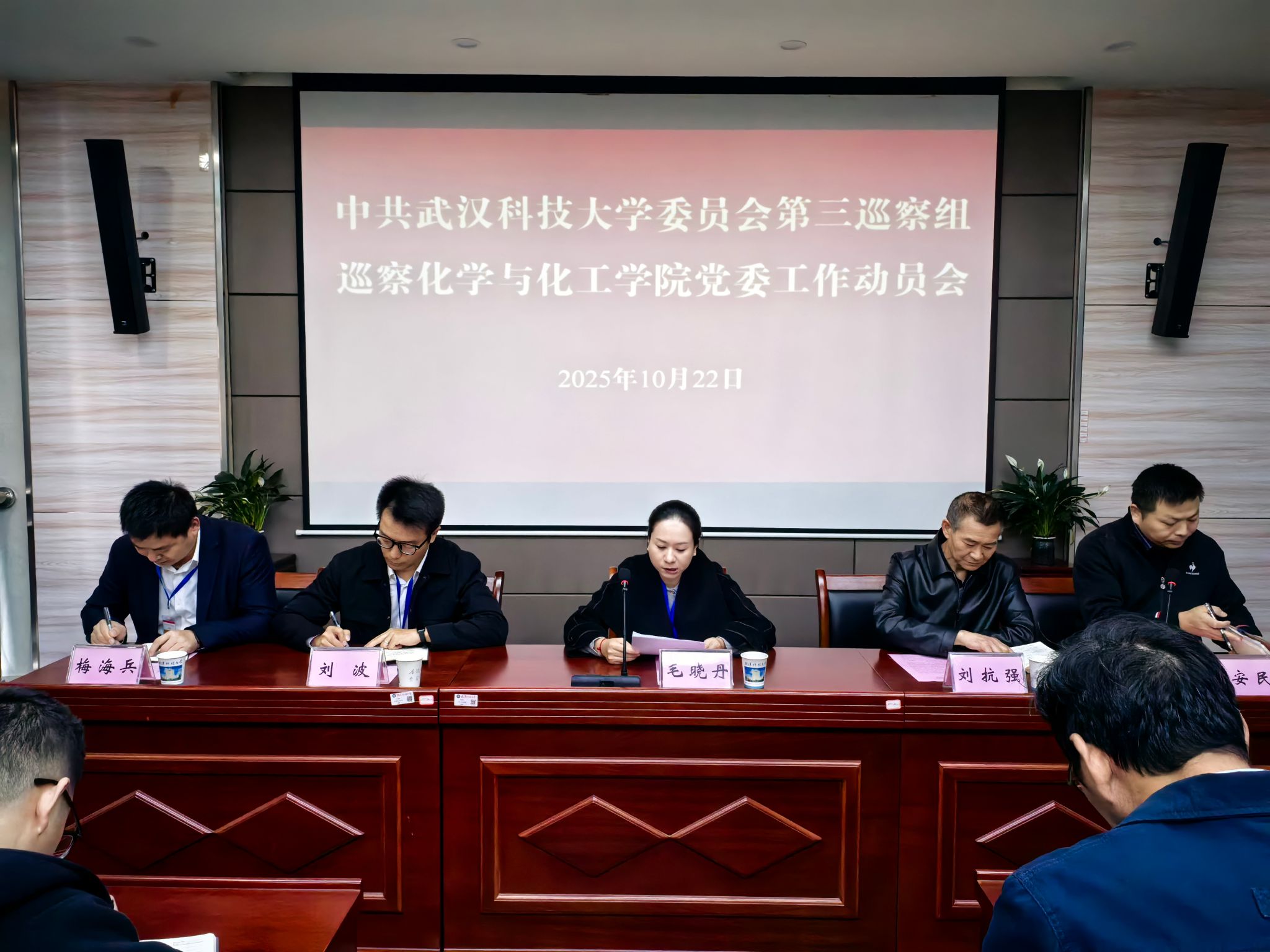 根据学千亿国际网页版登录统一部署,10月22日上午,中共武汉科技大学委员会第三巡察组巡察化学与化工学院党委工作动员会在青山校区钢铁楼1004路演厅召开。千亿国际网页版登录第三巡察组组长毛晓丹出席并作动员讲话,化学与化工学院党委书记刘抗强作表态发言。千亿国际网页版登录第三巡察组副组长刘波、梅海兵,第三巡察组全体成员,化学与化工学院领导班子成员参加会议,学院科级以上干部、系部主任、党支部书记、教师代表、学生代表及核磁共振交叉研究院院长杨俊、副院长常自伟列席会议。大会由学院院长郑安民主持。